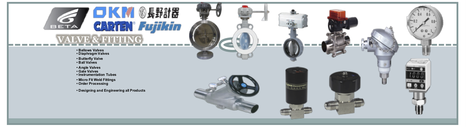 高純不銹鋼EP、BA/MP、AP等級(jí)管子/管道/管件;高純不銹鋼隔膜閥、波紋管閥、蝶閥、球閥、針閥、調(diào)壓閥等等;超純VCR、焊接、卡套接頭;以及設(shè)備應(yīng)用材料:壓力傳感器、壓力表、鋼瓶電子稱、火焰探測器、氣體探測器、鋼瓶緊急切斷裝置、加熱毯、加熱線、PTFE保溫纏繞帶;化學(xué)品供應(yīng)系統(tǒng)中的PFA閥門以及括口和焊接接頭,不銹鋼內(nèi)襯PFA/PTFE管道、閥門、接頭等配件。